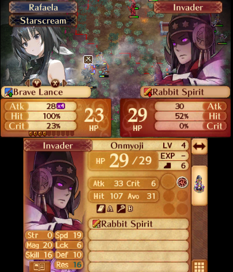 The opening took several resets to figure out, took the opportunity to give Rafaela a new toy. Starting with high Lance rank is one of Rafaela’s unique strengths (at least on Lunatic)