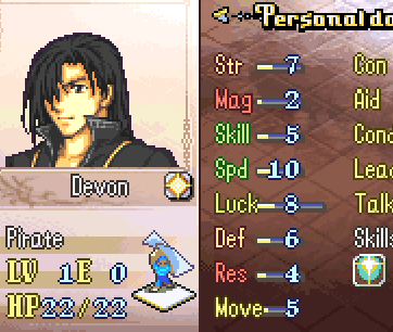 Devon will get a custom weapon a sword named Fang, this sword will heal you upon attacking an enemy. Malkis gets a custom lance named Draupnir, it will operate like a brave weapon, and give priority to finishing all 4 attacks before your opponent even gets 1 in.
