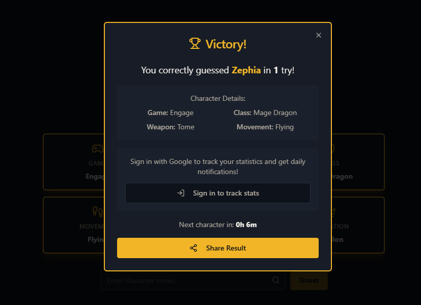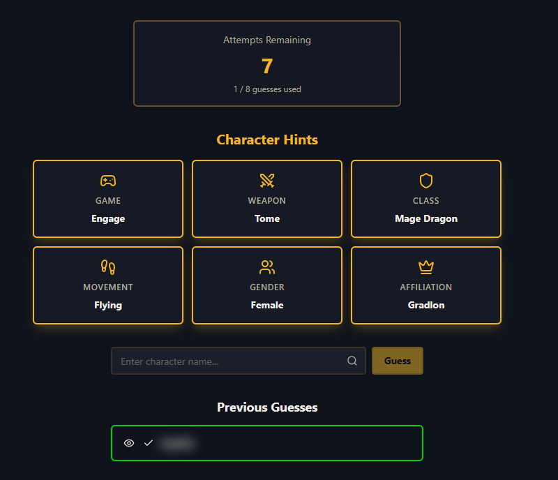 Basically, how it works is the game gives you a game to start with. You guess a character, and then if it matches class, affiliation, weapon, etc., then you get more hints based on that.