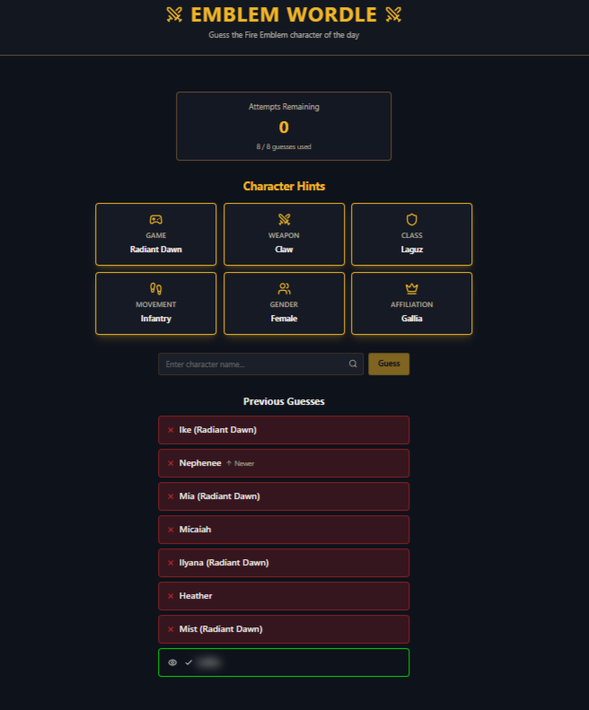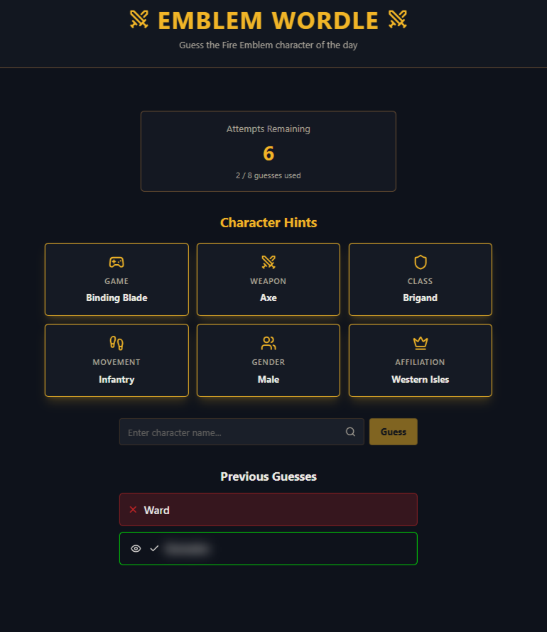It’s still a WIP, but it’s pretty fun! I hope that as a community, we can participate in Emblem Wordle together each day and compare our results.