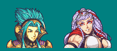 So this is the 3rd version of Yuna I’ve done. I’ve always kind of struggled with what to do with her design. Her shoulders are generally pretty plain and so is her hair, so I decided to try something a bit different with the shading for her hair this time round. Another part that is sorta complex about her is the fact she has quite a few colours for a simple design. She has hectochromatic eyes (blue and green) so that meant I definitely had to have blue and green on top of her white top, hair colours, skin colours and black bra colours. I also had to try her hair twice, the first time it was quite small for a FE portrait but probably reasonably sized for her face, but it looked weird next to all the other portraits so I had to increase its size across the board about 2-4 pixels. Not sure if I’d do hair again like this, but I have done it on occasion (eg Siegfried)