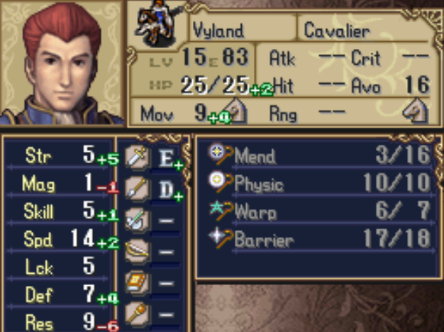 All in all Ironmanning all these games made me realise just how useable some seemingly bad units are, and how sometimes you only understand the game designers intention behind a character during an Ironman. Shadow Dragon is the best example of this, Darros sucks at a first look, but make him an armour knight and he will have an insane 60% DEF growth, higher than any other regular unit, General promo gains are also massive, even if he gets DEF screwed, like mine did at -3, he is still insanely useful, basically like Sedgar but without speed. Roshea is another great example, sucks at first, but he can get to C lances relatively quickly, and has enough base SPD to not get doubled by most enemies till lategame. Vyland has a pretty good speed growth, and the 2 times i used him he turned into one of my best units, in one of those he was leveled as a curate from level 1 to 20 because i needed another staff user, and then had all my other staff users die, so i needed him for Physic/Warp