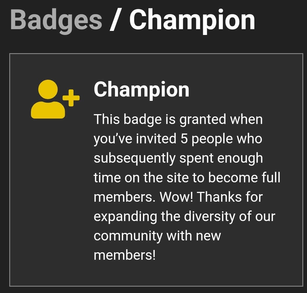 We’re racing to champion badge and apparently you can invite existing members. @ditto and @Vesly have now invited each other to the forum somehow