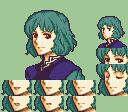 The hair was taken from Lowen and another FE7 Bandit, What matter here is the shape of the haircut rather than the consistency between the differents hairs
