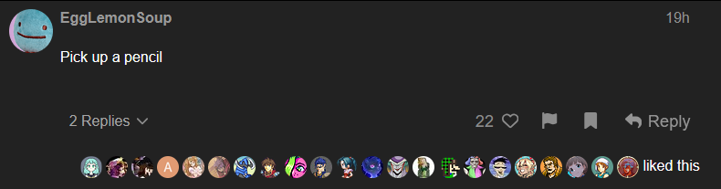 Which is frankly shaming unacceptable behaviour as Vesly pointed out, and makes my case about FEU being unfriendly for me. It also sounds really stupid without the context of his second comment about the author’s allegedly “anti-art motivations” because this project doesn’t use AI art… effectively it’s shaming him for stuff not related to this project at all. It’s also NOT adding something useful. (I find it funny that you hearted it)