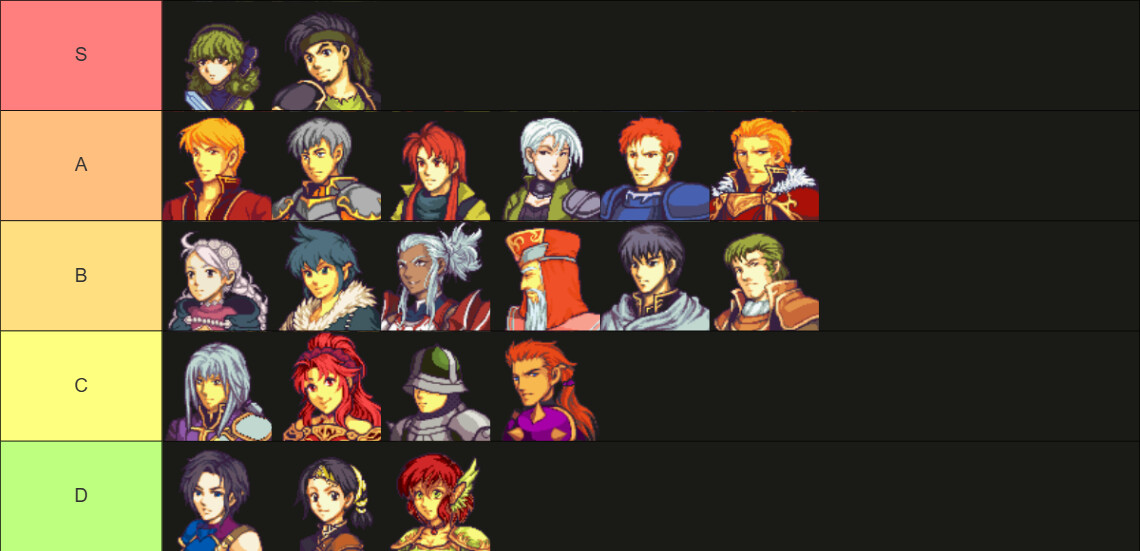 C - All in this tier can get to the level of A/B tier with the use of scrolls, these affect your growth rates and make questionable units like Ottoby viable for late game. Dek is literally the second to last unit in the game, Temu life and death doesn’t help him at all.