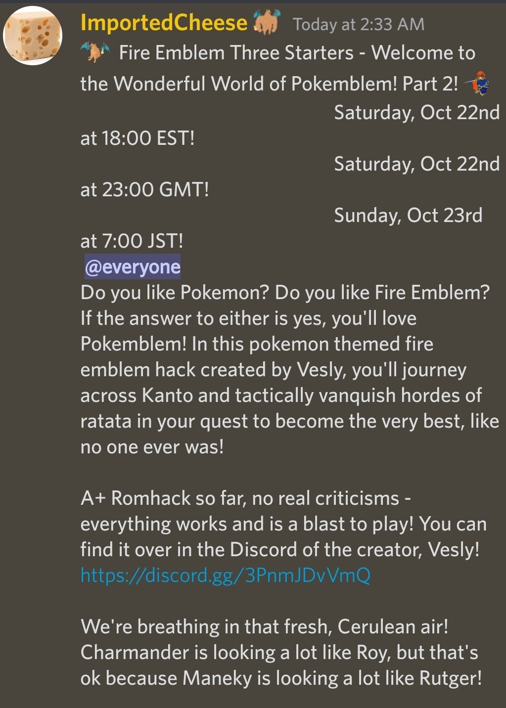 Sorry it’s at the same time as another FEE3 video; the timing is up to Imported Cheese. Be sure to check out the usual 6 pm FEE3 video before or after the stream. ![]()
