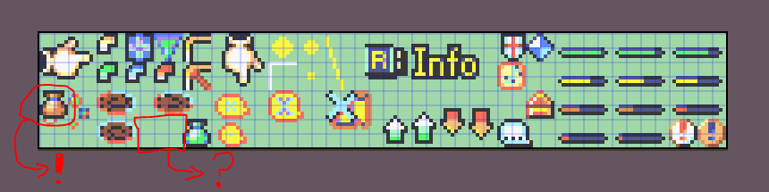 Isn’t there a way to place the brown bag in a different area of the icon sheet? Maybe right beside the green one in the area I marked with a question mark. Or maybe a way to make poison not display those tiles, if there is no other way.