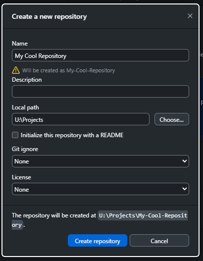 In GitHub Desktop, go to File -> Clone repository. It should pull up a list of every repository on your account: select the one you just forked, specify where you want to put it, hit Clone, and you now have your fork on your computer. Any changes you make to this fork only apply to your copy of it, not the original, so you’re free to do whatever you’d like with it. Remember to commit your changes and push them to GitHub!