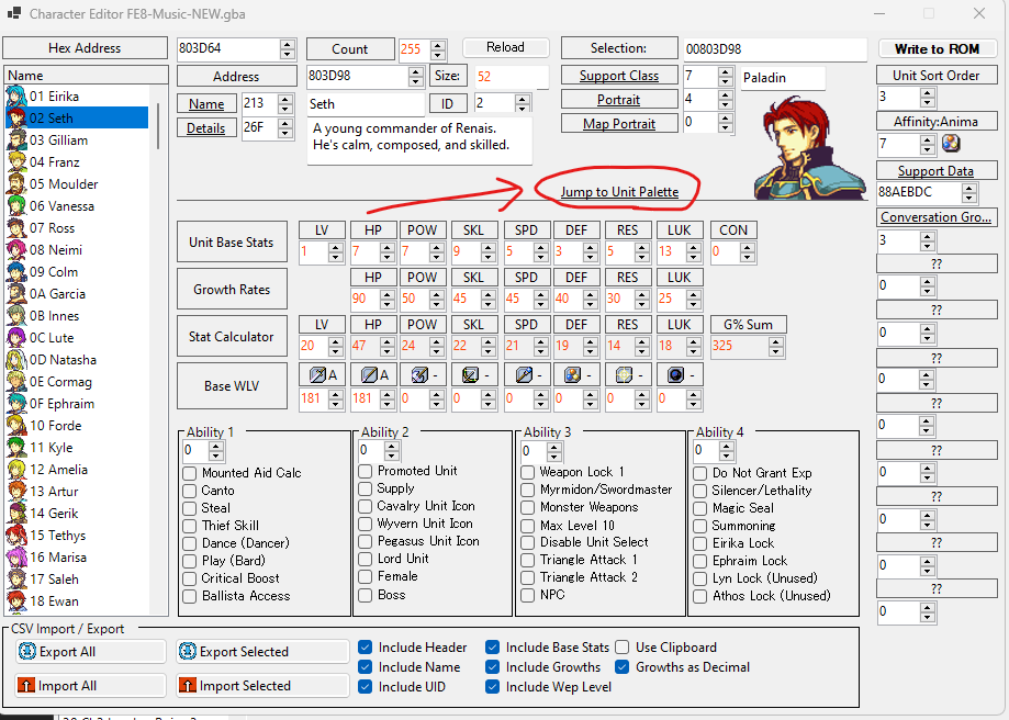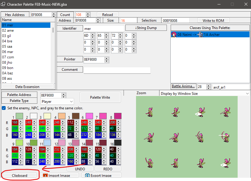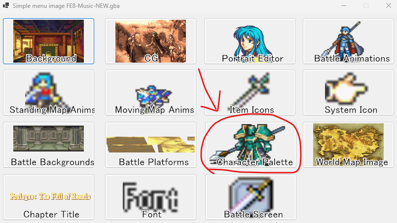 Also. Remember that this is only to edit existing palettes. To reassign palettes to specific character IDs, use this button in Character editor