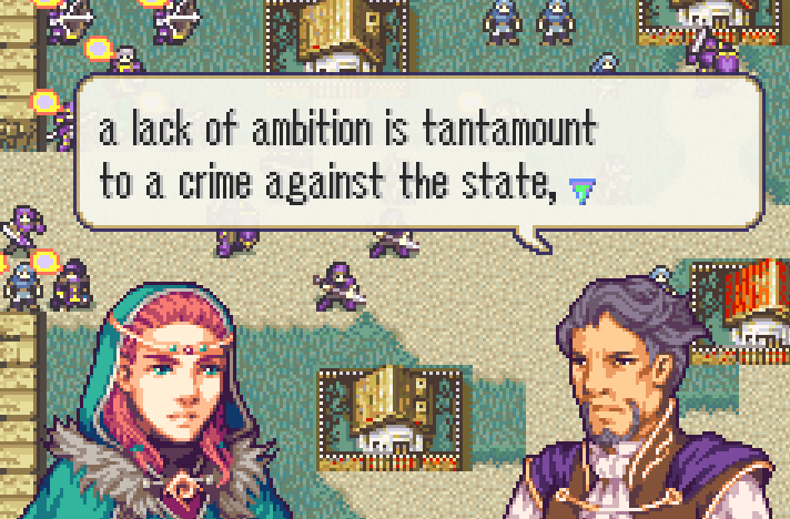 So that’s a lot of ideas, but what’s actually happened? Okay, look, if I showed you any pictures of the ROM it would look a lot like vanilla FE8 right now. A lot of classes and animations and foundation work is done. Some dialogue is done but it all needs to be replaced because the story’s changed again; still, I think it helped me capture a vibe and will make it easier to refine going forward. Class stats are in. The few portraits that were done a couple years ago are in, but that’s just a handful. Graphical work won’t start in earnest until Lumi rests, then does the next project, then rests again (similarly, I’ve got to finish the writing for the next project, which is roughly half done).