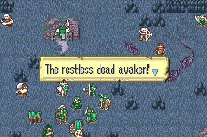 The recurring RPG mechanic where you rob a tomb and get loot at the cost of awakening enemy undead is cool. It’s past time it came to the GBAFE format.