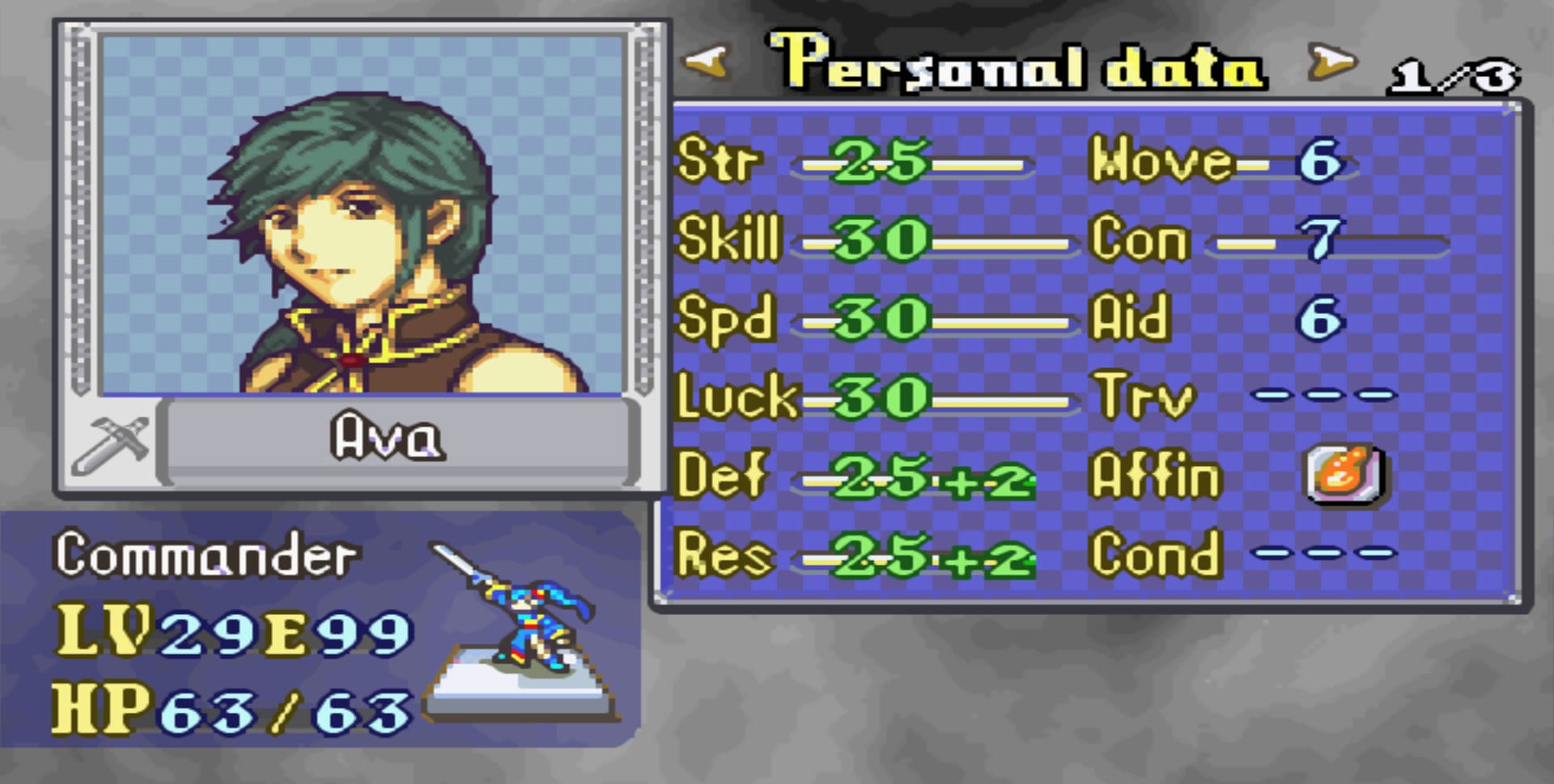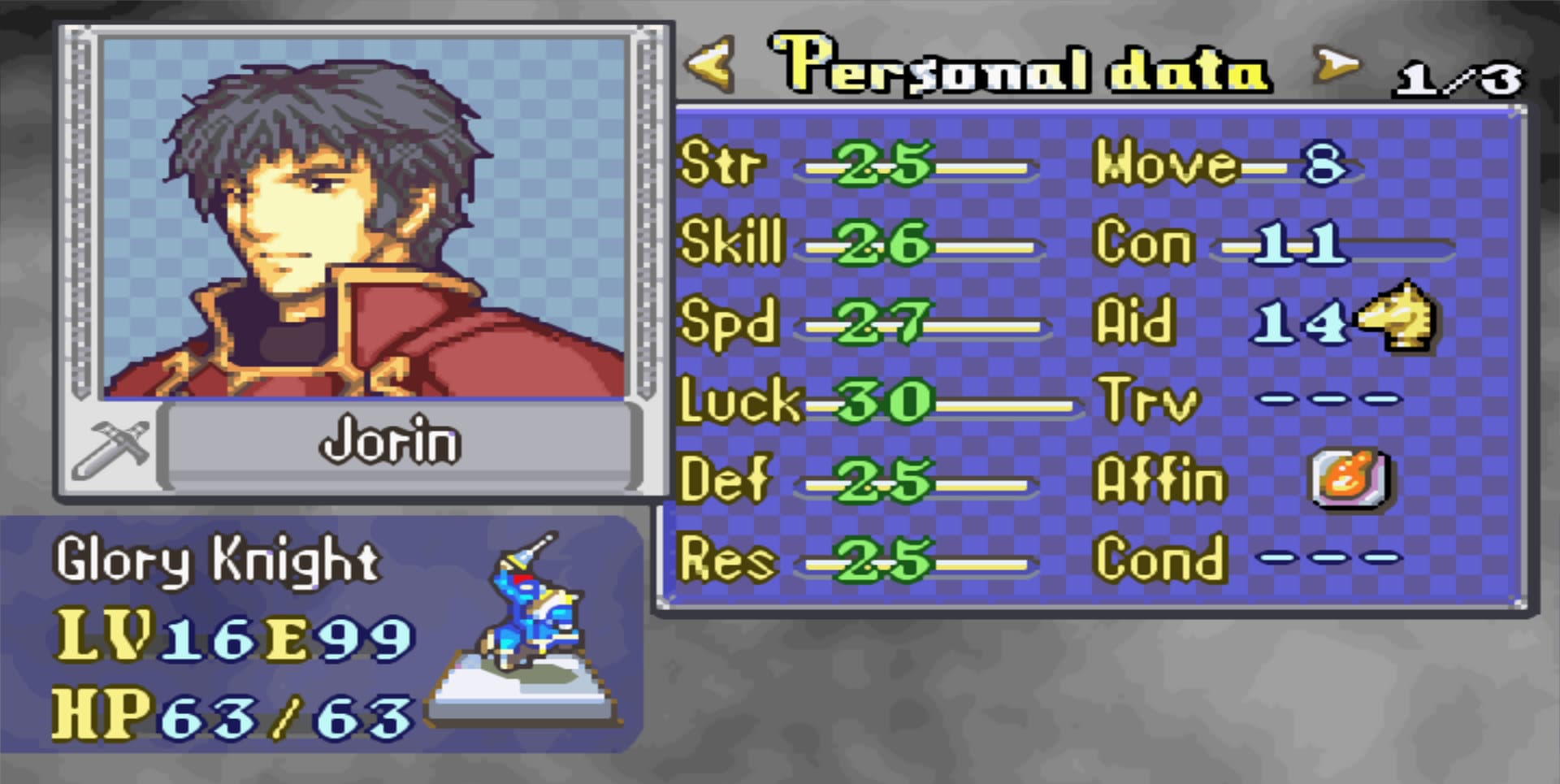 I consider Aaron to be the third unofficial Main Character of this Hack since he had a few Gaidens and Main Chapter dedicated to his story and journey so I dedicated most of my time to grind his weapon rank and level.