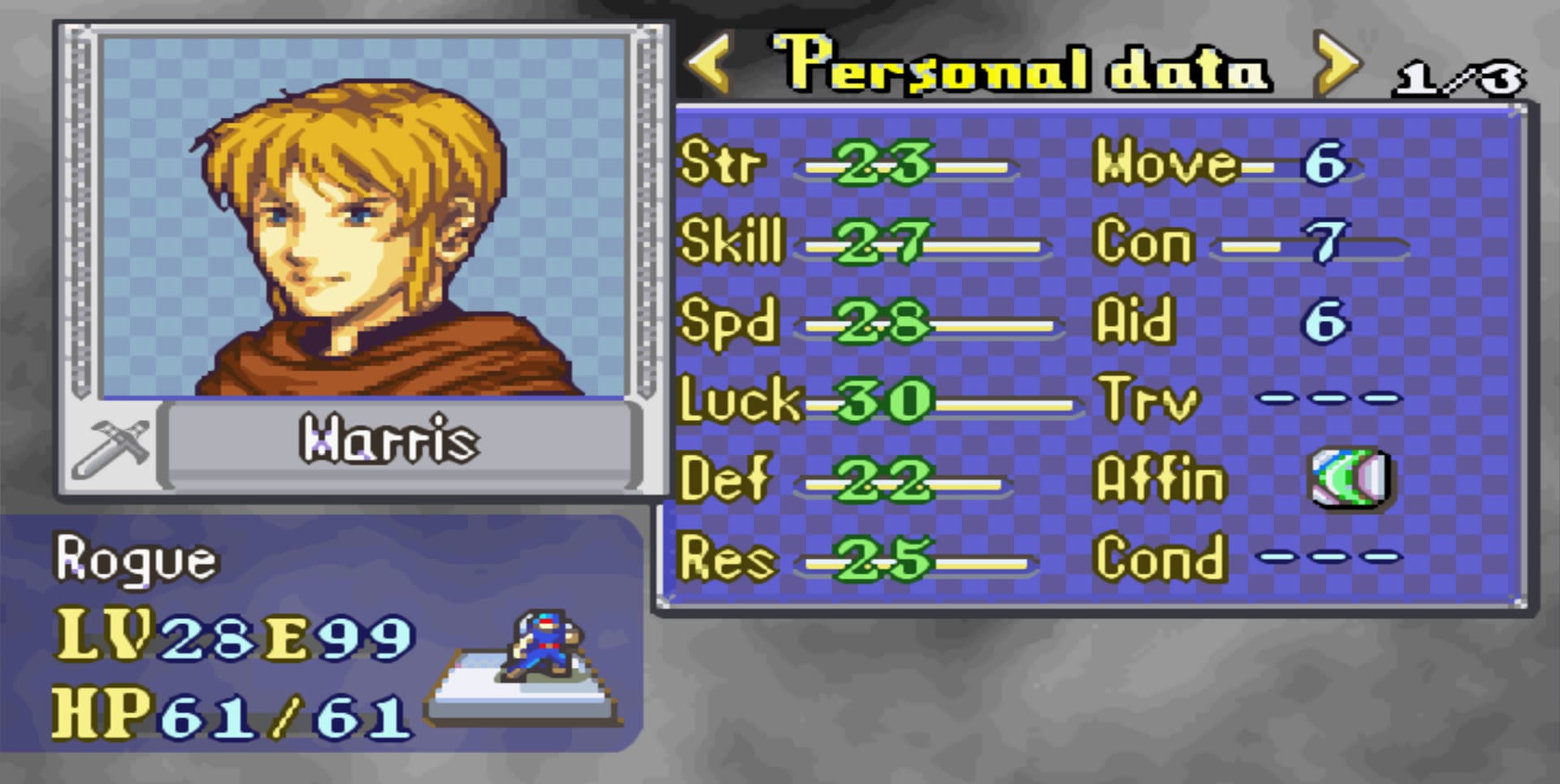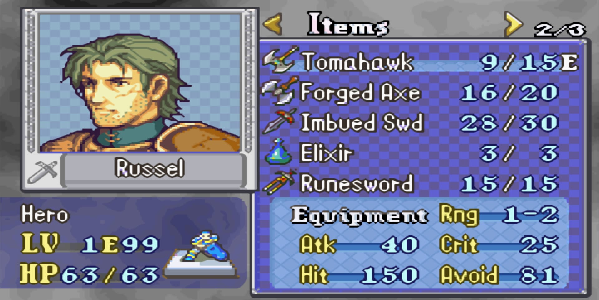 I just love the Hero Class and He was Prydain’s General so it only make sense to have him for the final battle. Russel’s weapon versatility and high weapon rank help him to use some really strong Axe and Sword.