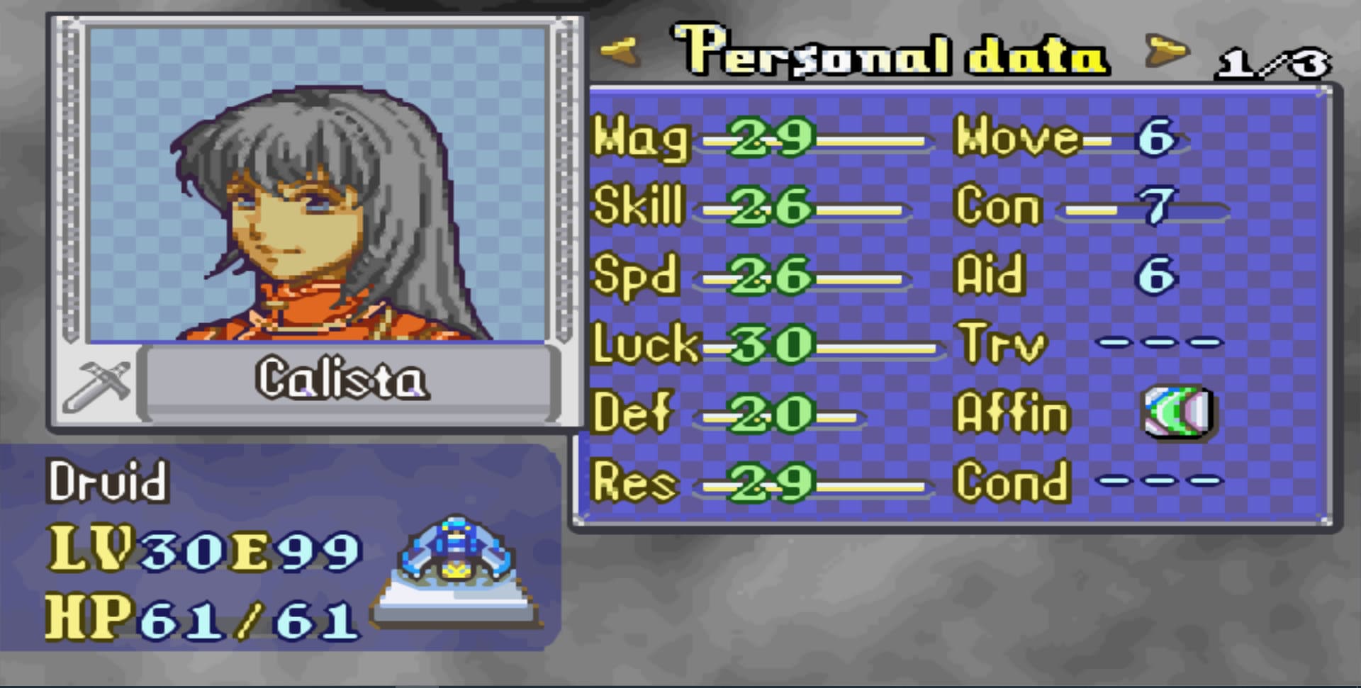Calista my Main Dark Mage. Got her S rank in Dark Magic. She was a powerful Druid.