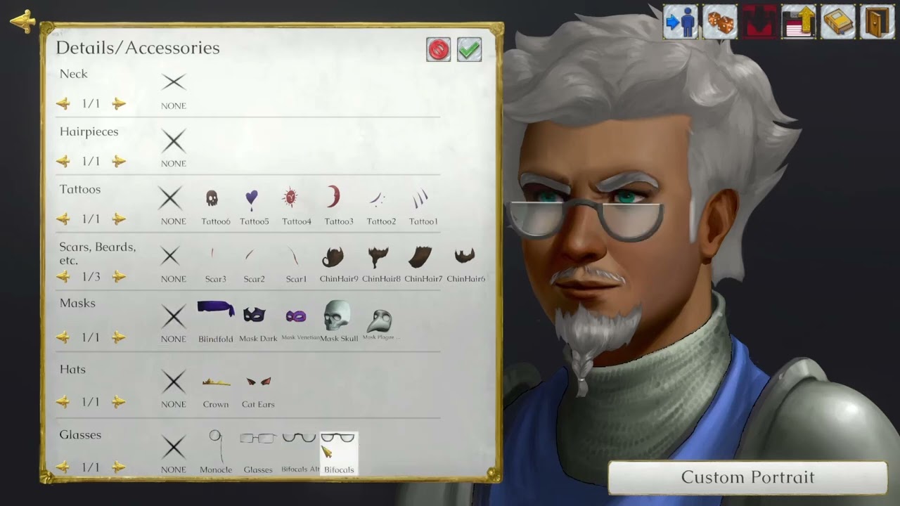 - A detailed character creation tool with support for one-click random character generation (no LLMs or other such nonsense here, btw–it’s all custom);
