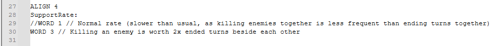 It takes the number in the growth column and multiplies it by SupportRate, which I reccomend as 3. This is because killing things is harder than ending turns, so the vanilla rate was making supports much more difficult to obtain. Set it as you’d like. You only gain points for KOs, not damage. It does not overwrite anything in that screenshot.