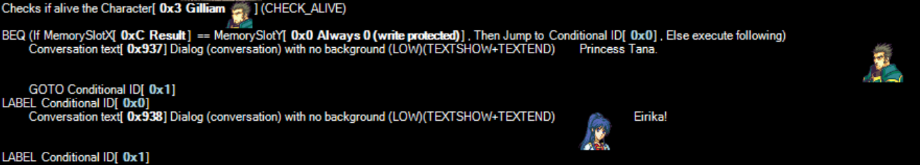 [ifAliveXX][endif] // replace XX for 01 for Eirika