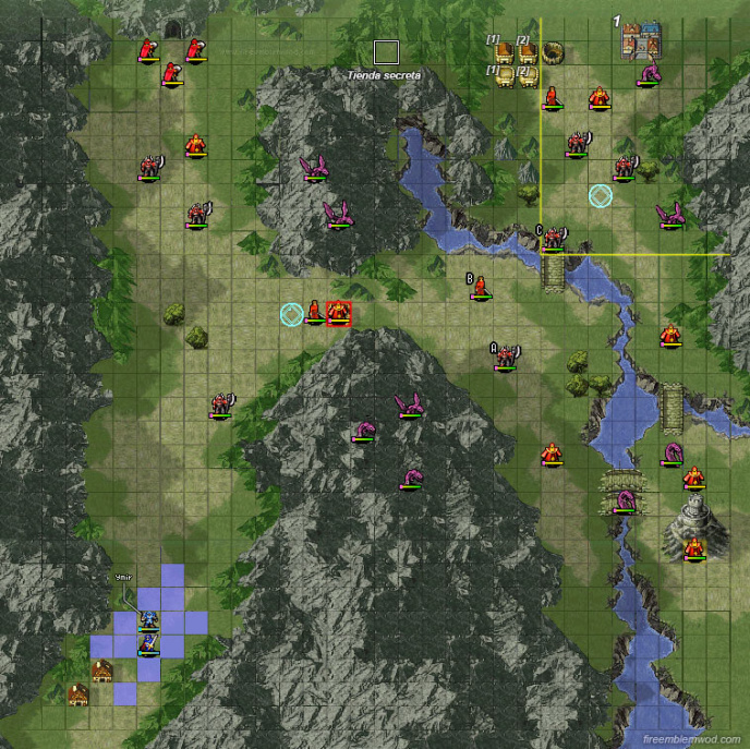Have you ever disliked Bridge Maps? Me too! Chapter 13 of FE6 says hello. Took over 4 hours to make, although 1 hour of that was me panicking over nearly missing my Anthropology final. Then realizing my Computer Science final was due 2 days ago. Most of the fine details are perfectly accurate except the region right around and below the castle, which my brain failed to count the number of spaces out.